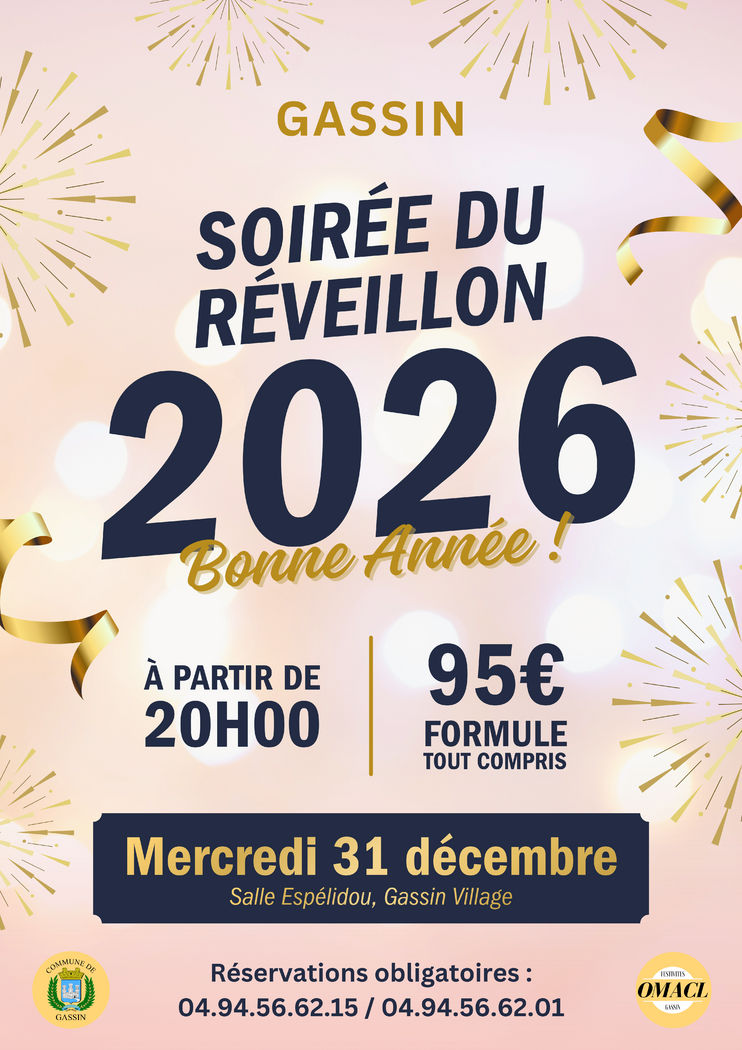 Vous cherchez une soirée pour le 31 décembre? La ville de Gassin et l'omacl vous proposent de terminer l'année en beauté avec une soirée du nouvel an très festive le dimanche 31 décembre.
