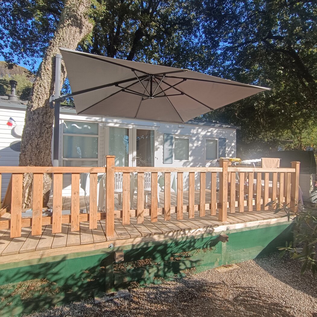 Ce mobil-home est idéalement situé au cœur d’un domaine de 31 hectares de pinède, au pied de la colline de Gassin, dans le magnifique Parc Montana.